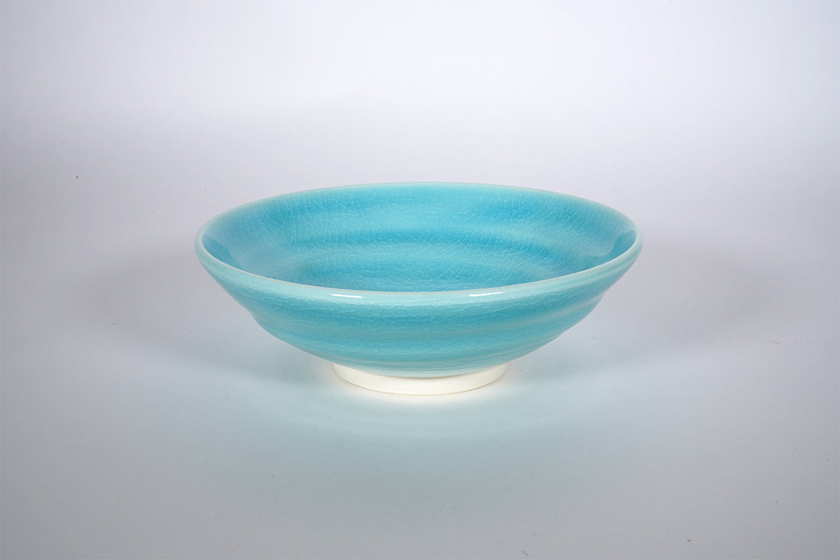 淡青:淡い青が爽やかな器です。見込みには釉薬が溜まり、光を受ける湖のようにキラキラとしています。