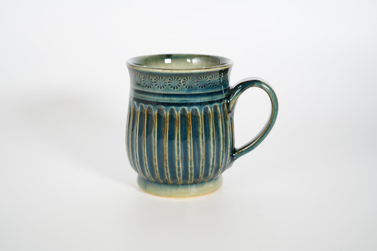 伝統的な三島の技法によって、刻印された花模様が可愛らしいマグカップ。