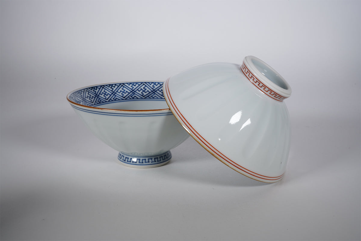 内側の渕と高台に染付で描かれた古紋が特徴の伝統的な器です。